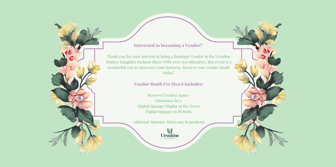 I authorize Ursuline Academy - Cincinnati to use the credit card entered on the submission page at event Mother Daughter Fashion Show 2026. Once the transaction has completed successfully, a confirmation receipt will be sent to the email address entered.